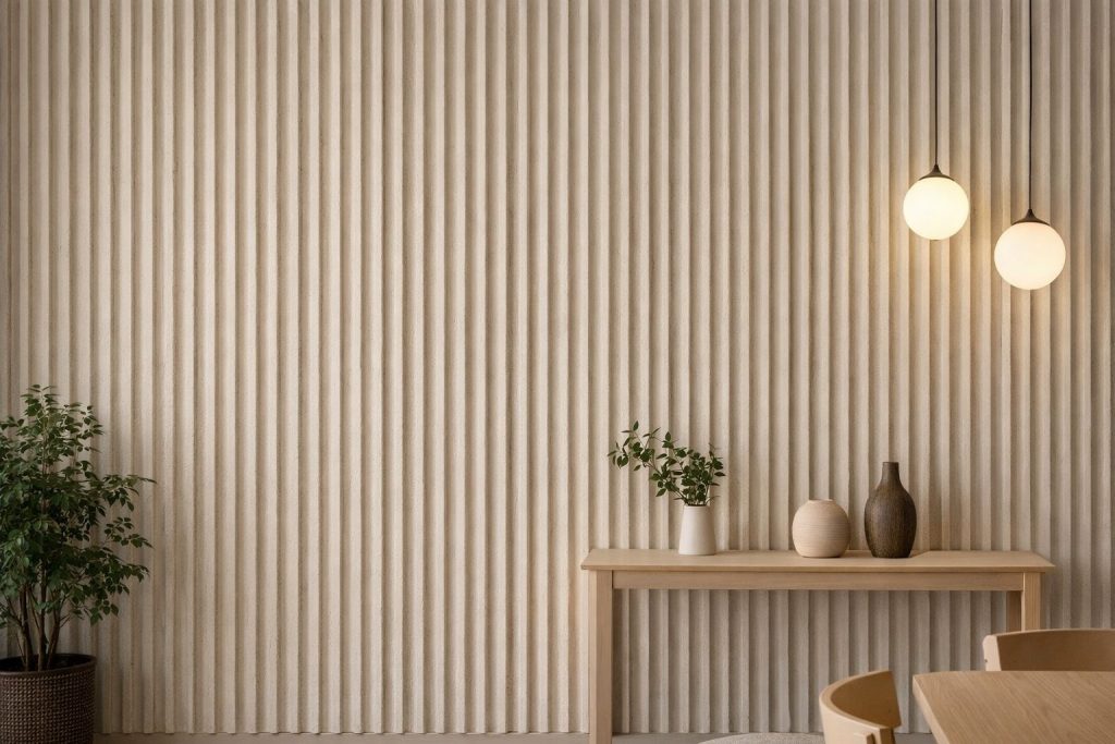 Panneau mural décoratif en pierre souple, au design cannelé vertical apportant rythme et élégance à l’espace. Sa teinte claire et naturelle crée une ambiance chaleureuse et contemporaine, idéale pour les salons, salles à manger, bureaux ou espaces commerciaux. Léger, flexible et facile à installer, ce revêtement permet d’obtenir un effet architectural haut de gamme sans les contraintes des matériaux traditionnels.